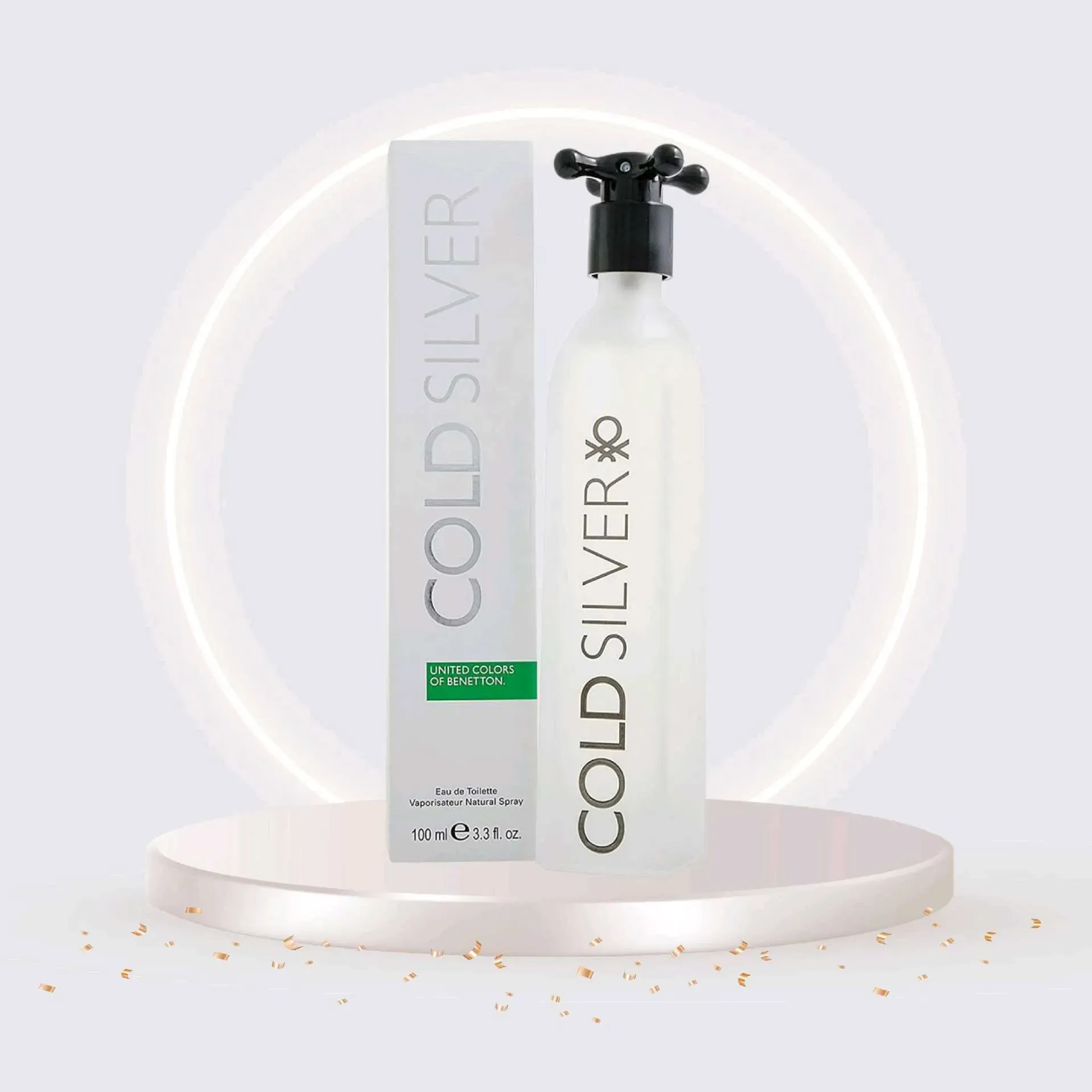 Perfume Cold Silver de Benetton es una fragancia de la familia olfativa Amaderada – Aromática para caballeros.